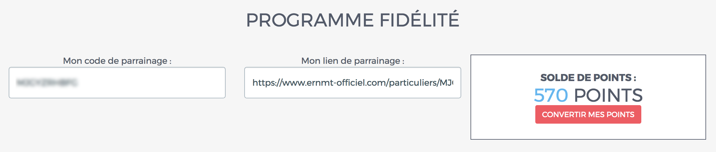 À chaque fois que vous commandez un ERNMT / ESRIS sur notre site ou que vous parrainez l’une de vos relations, vous gagnez des points de fidélité. Ces derniers sont disponibles et consultables à tout moment depuis l’espace personnel créé lors de votre première commande.